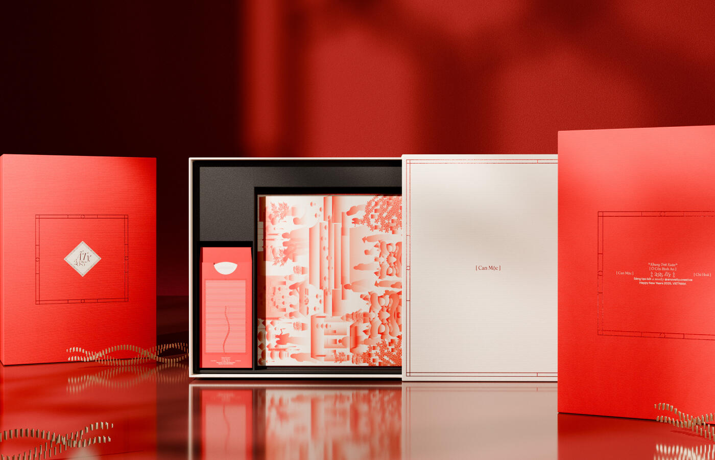 The “ẤT TỴ 2025” Gift Box is inspired by traditional Tet imagery—from warm family moments around the bánh chưng pot and preparations for the holiday, to peaceful visits to pagodas for New Year blessings. The vibrant spring markets, blooming apricot and peach blossoms, and energetic lion dances further highlight the festive spirit and celebrate the cultural values of Vietnamese Tet.