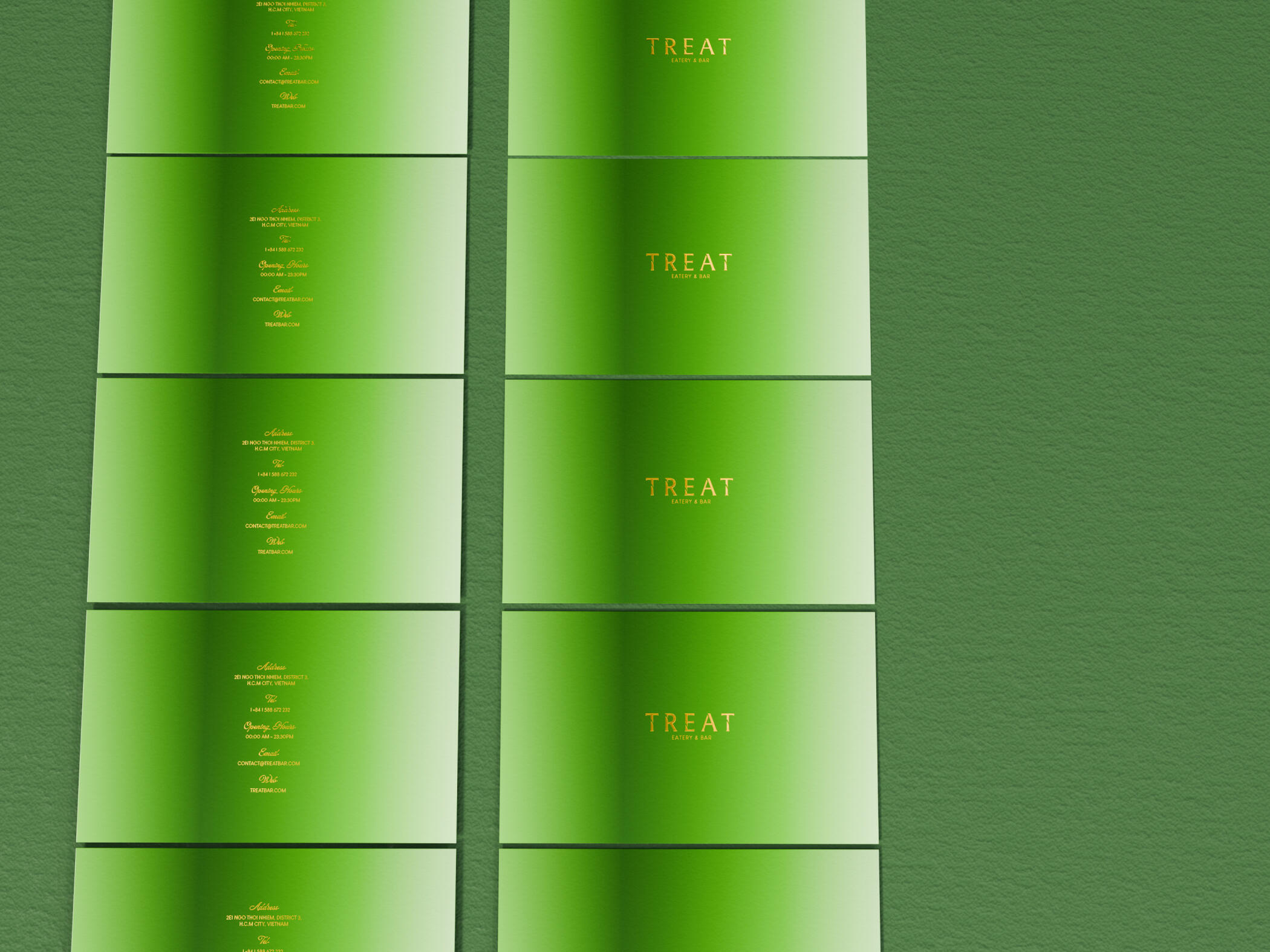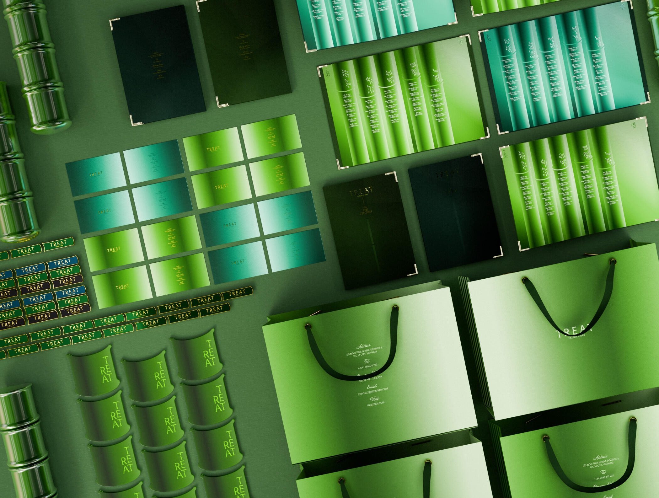 The project involves designing a brand identity for Treat (Eatery & Bar) inspired by bamboo, a traditional symbol of Vietnam. Our goal is to create a luxurious and modern space that offers diners a unique culinary experience, combining Vietnamese and Asian cuisine. With the slogan "Treat Yourself," Treat aims to be the ideal destination for those who want to indulge themselves after a stressful day at work.