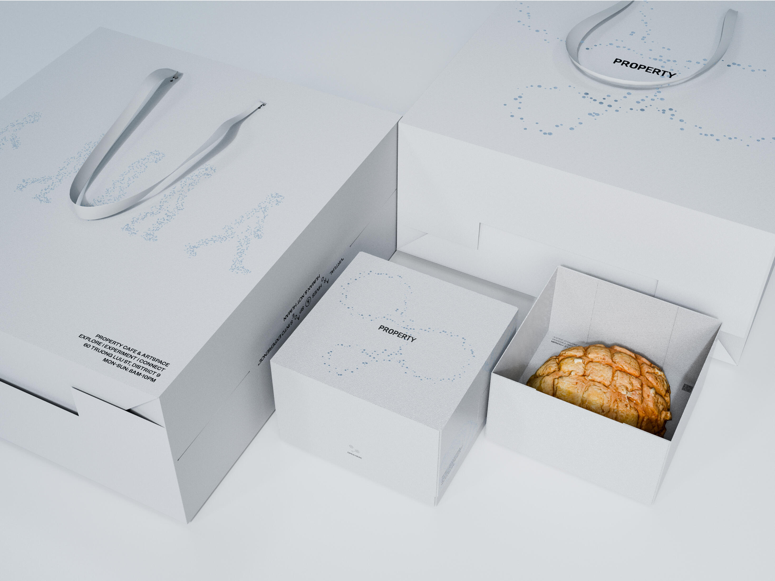 PROPERTY CAFE & ARTSPACE is a creative space that merges art, people, and ideas within a modern and inspiring environment. Positioned as a "Creative Laboratory," PROPERTY adopts the "Particle-DNA" symbol to represent collaboration and transformation. Here, each customer is seen as a unique "particle," contributing to a shared creative ecosystem where art and technology converge.