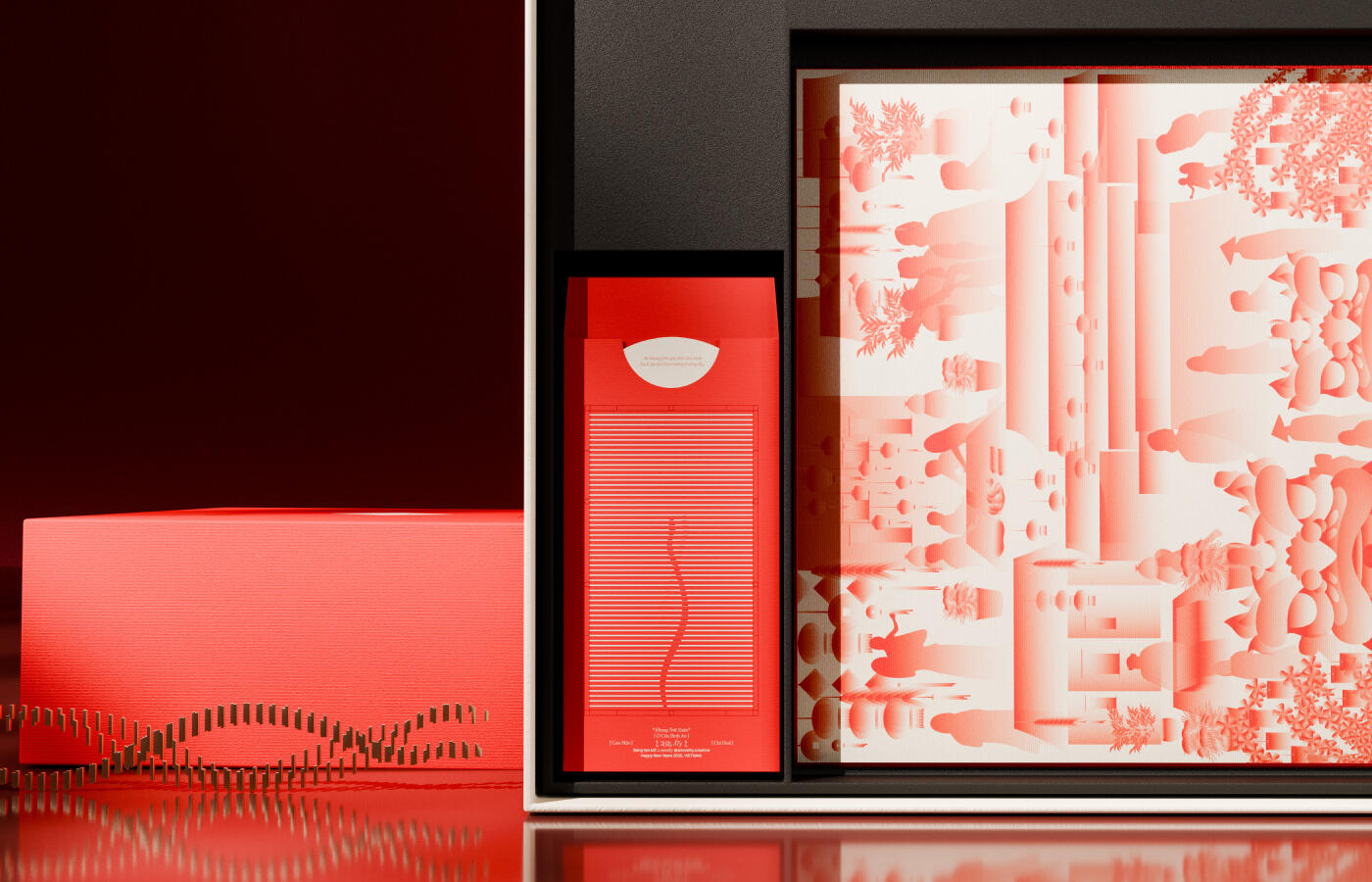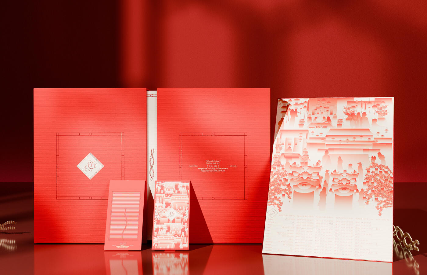 The “ẤT TỴ 2025” Gift Box is inspired by traditional Tet imagery—from warm family moments around the bánh chưng pot and preparations for the holiday, to peaceful visits to pagodas for New Year blessings. The vibrant spring markets, blooming apricot and peach blossoms, and energetic lion dances further highlight the festive spirit and celebrate the cultural values of Vietnamese Tet.