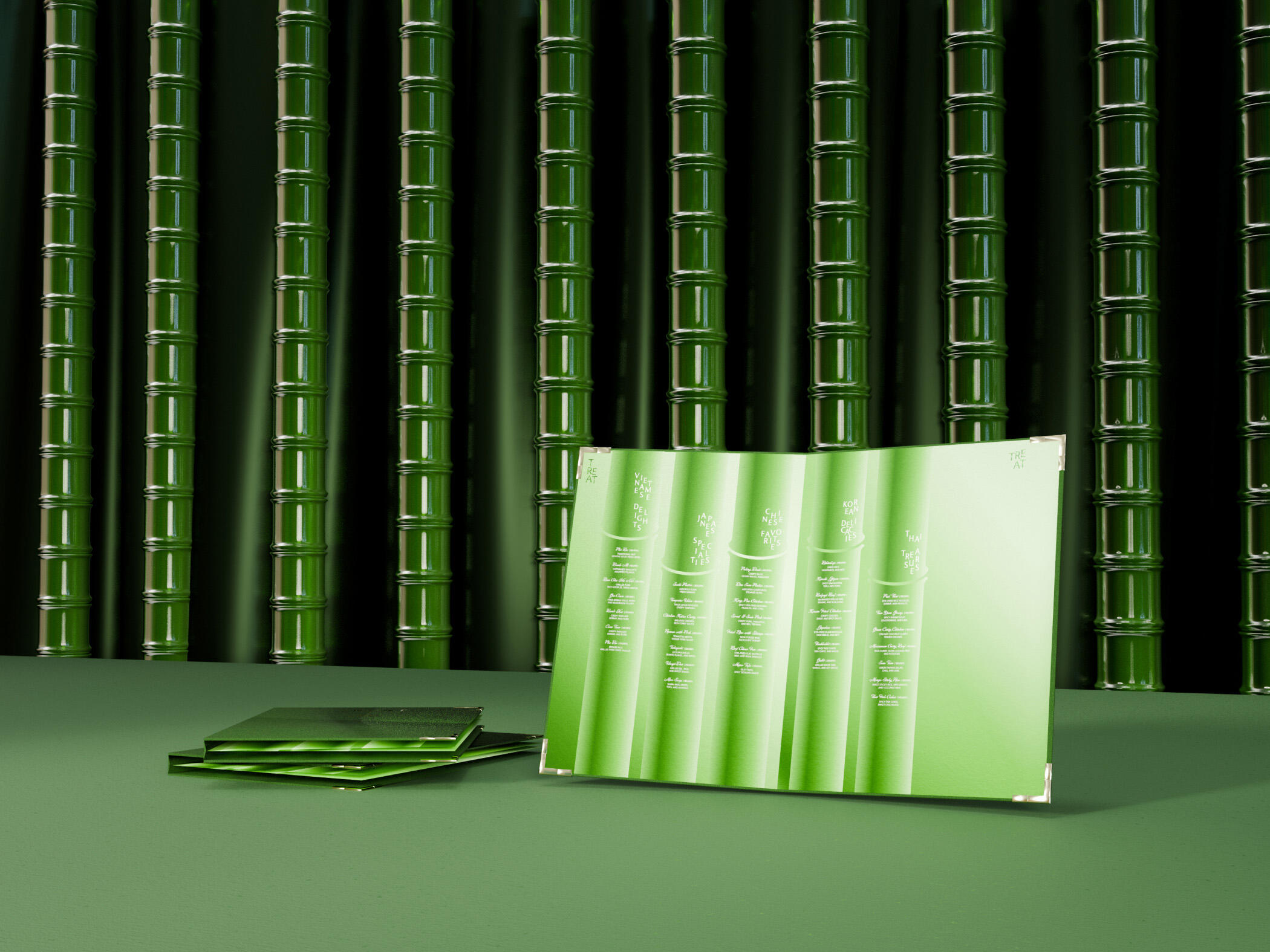 The project involves designing a brand identity for Treat (Eatery & Bar) inspired by bamboo, a traditional symbol of Vietnam. Our goal is to create a luxurious and modern space that offers diners a unique culinary experience, combining Vietnamese and Asian cuisine. With the slogan "Treat Yourself," Treat aims to be the ideal destination for those who want to indulge themselves after a stressful day at work.